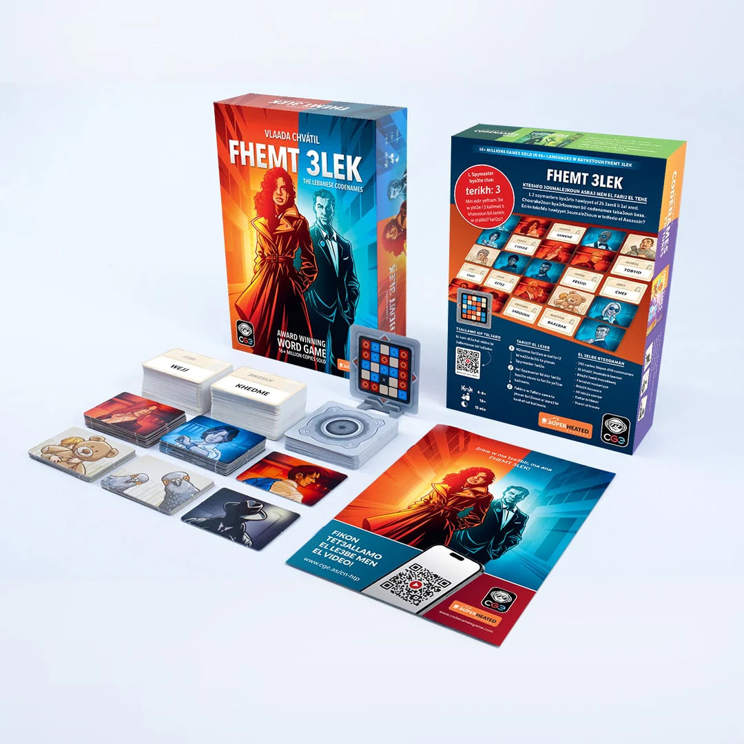 In Fhemt 3lek, the official Lebanese version of Codenames, two teams compete to see who can make contact with all of their agents first. Spymasters give one-word clues that can point to multiple words on the board. Their teammates try to guess words of the right color while avoiding those that belong to the opposing team. And everyone wants to avoid the assassin.