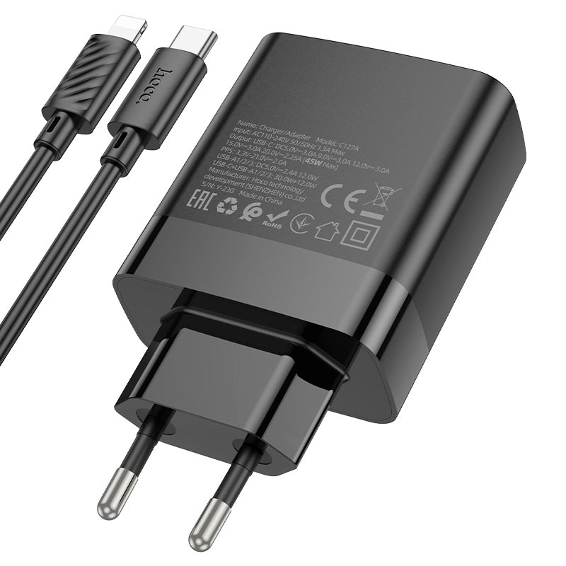 1 × Type-C – 5V / 3A, 9V / 3A, 12V / 3A, 15V / 3A, 20V / 2.25A – 45W max.