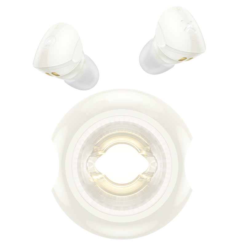 13. Mini donut design, with silicone protective case and lanyard. Breathing ambiance light effect. Serves as both an headset and a fashion accessory.