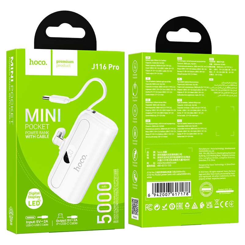 1. Capacity: 5000mAh, 18.5Wh. Rated capacity: 2800mAh (5V TYP 2A).