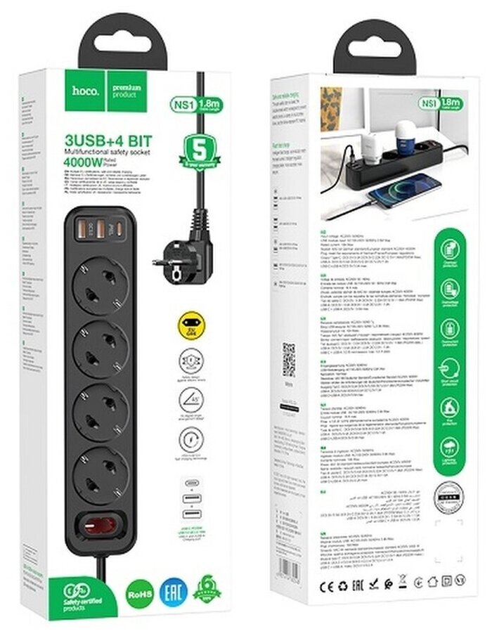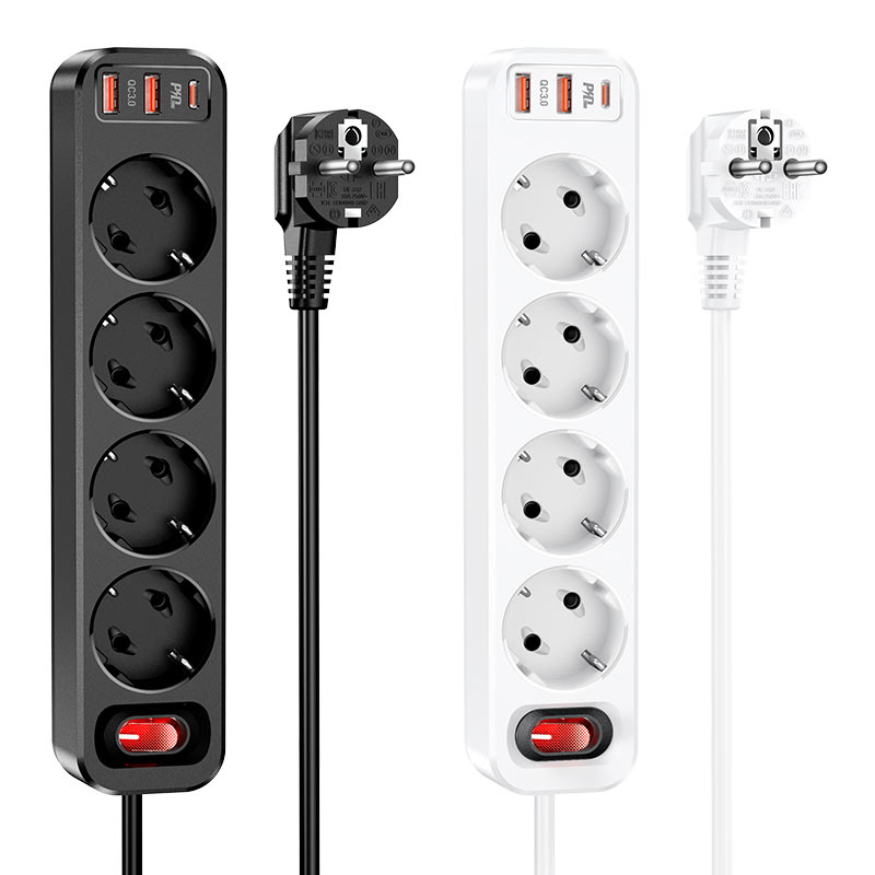 2. 4 sockets, 4000W high power. Plug meet the requirements of German / France / European regulations).